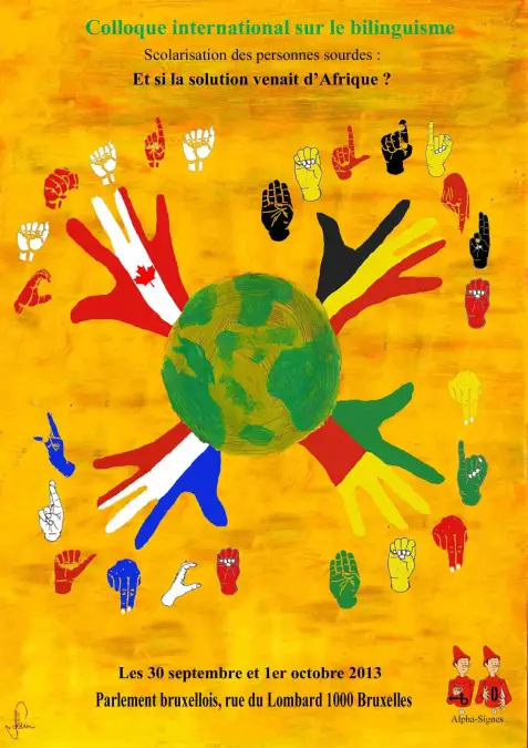 Alpha-Signes organise à Bruxelles les 30 septembre et 1er octobre 2013 un colloque international sur le bilinguisme, avec en particulier la participation d’ASUNOES-Bénin : Raymond SEKPON, Paul AGBOYIDOU et Gift SEKPON, et bien d’autres de Belgique, de France, et du Canada :