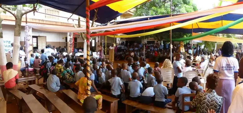 L’école a fêté en octobre 2015 les 20 ans de sa création. Nicole et Georges Vaucheret, qui parrainent l’école depuis 10 ans, avaient dès 2004 permis d’établir le contact pour un partenariat avec Alpha-Signes dans le cadre de la coopération belge. Ils relatent ici leur voyage de 3 semaines (du 20 octobre au 11 novembre 2015) et leurs impressions sur cet exemple d’intégration des personnes handicapées auditives, assez unique au monde puisque tout l’enseignement de la maternelle à la terminale se fait simultanément en Français et en Langue des signes. Les parrainages sont une incitation à la scolarisation des enfants sourds car les familles sont réticentes à les envoyer à l’école, surtout quand il s’agit des filles. Ils nous collectent également des ordinateurs portables usagés, qui sont reconfigurés et équipés de logiciels libres, afin d’équiper la salle informatique de l’école.